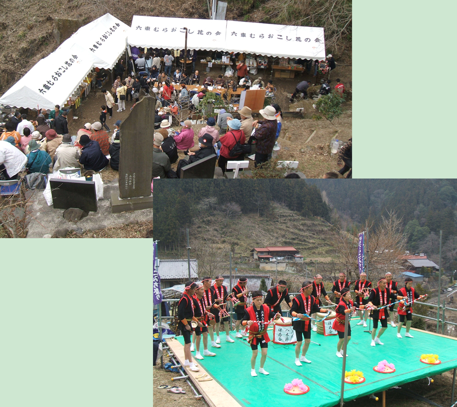 紫色の花をつけた約10万株の可憐なカタクリの群生地に、地元住民が中心となり、模擬店や農産物などを販売します。来客者には甘酒や綿菓子がふるまわれます。