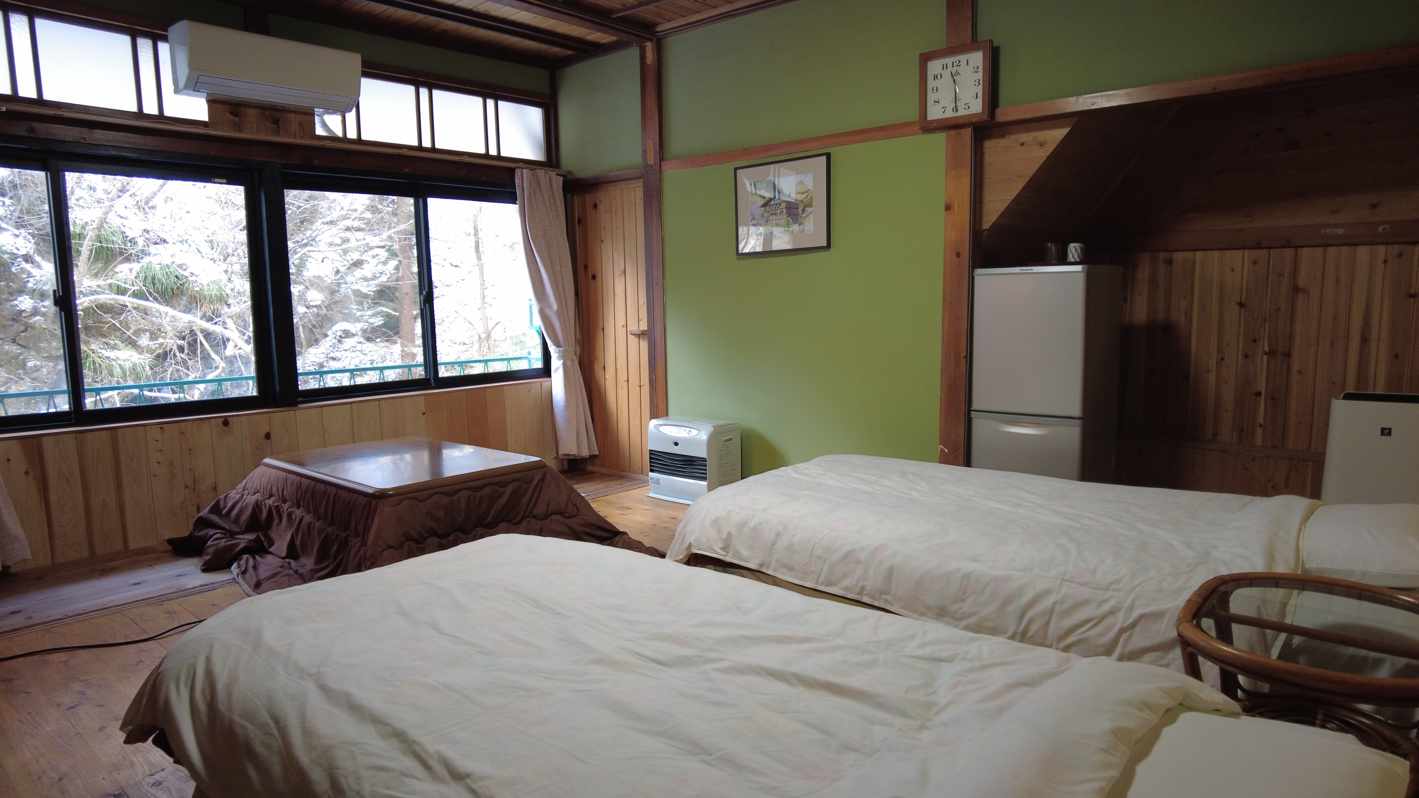 かじか倶楽部は、3室だけの小さな民宿ですが、部屋の広さと設備には自信があります。40畳の純和室、20畳、10畳の洋室です。また、すべての部屋に星尾温泉 源泉かけ流し専用風呂がついています。各部屋にトイレ(ウオシュレット)、洗面所、冷蔵庫が設置されています。「立岩」「星尾」には、テレビはございません。(自然や体験を満喫してほしいからです)また、寝衣のご用意もございませんのでご持参ください。