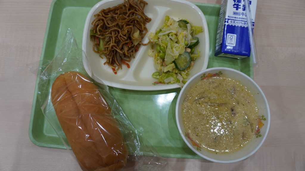 今日の給食には「焼きそば」が出ました。「焼きそば」のソースがパンと合っていてとても美味しかったです。
