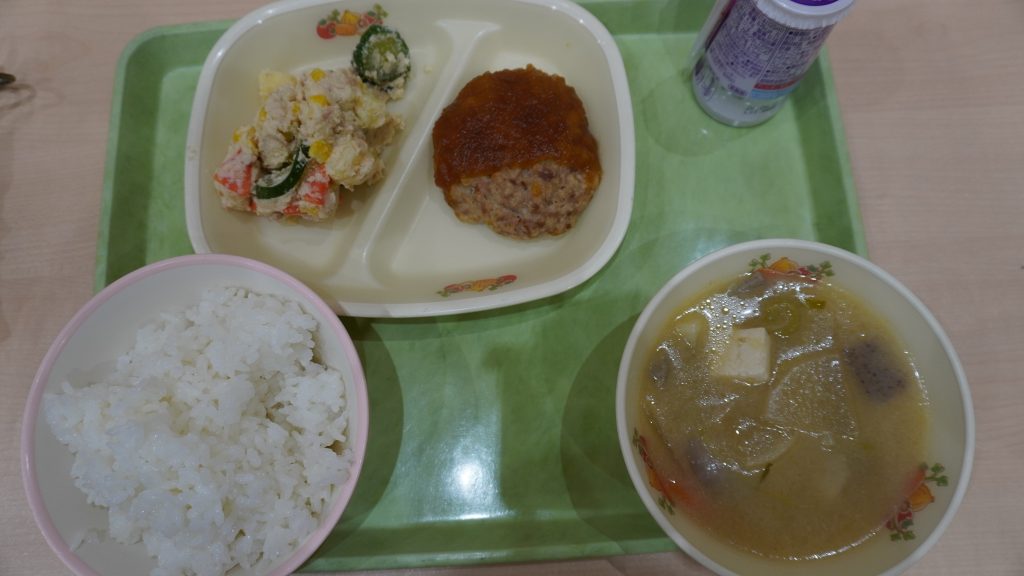 今日の給食には「おろしハンバーグ」が出ました。「おろしハンバーグ」は甘じょっぱいおろしソースがハンバーグによく合っていて美味しかったです。