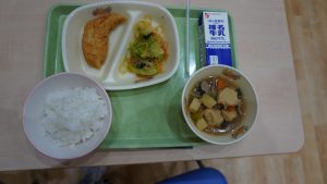 今日はささみのレモンソースとすいとんでした。ささみのレモンソースはさっぱりしていて美味しかったです。
