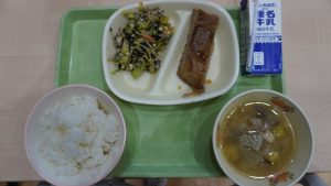 今日の給食 2025/12/22 12月19日(金)の給食 なんもく学園職員 今日の給食は、「マグロステーキ」と「てっこつサラダ」と「さつまじる」でした。「さつまじる」はさつまいもの甘い味が美味しかったです。