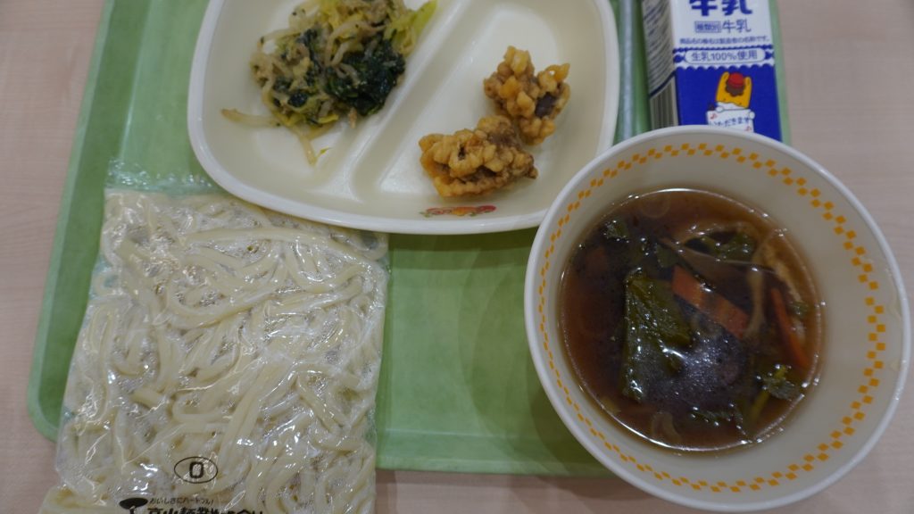 今日の給食には「こんにゃくのから揚げ」が出ました。「こんにゃくのから揚げ」は不思議な食感で美味しかったです。