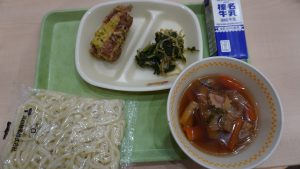 今日の給食には、「ちくねぎ」が出ました。ちくねぎは下仁田小学校の4年生がレシピを考えてくれたそうです。下仁田ネギの味がして美味しかったです。
