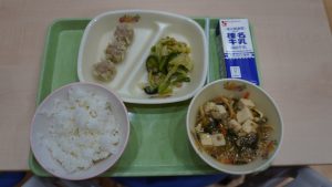 今日は麻婆豆腐と上州シュウマイでした。麻婆豆腐は具材がいっぱい入っていて美味しかったです。
