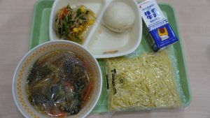 今日の給食には「ラーメン」と、「手作りあんまん」が出ました。「手作りあんまん」は胡麻の風味が感じられました。