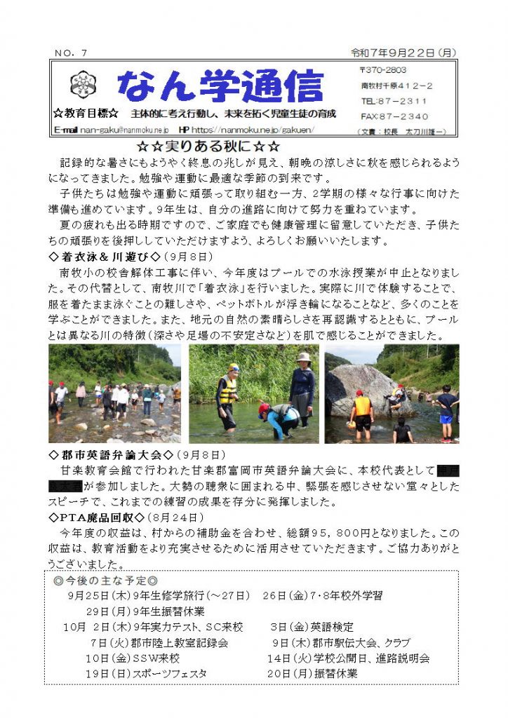 毎月発行しているなん学通信で、子供たちの活動状況や学校からのお知らせ等を発信しています。
