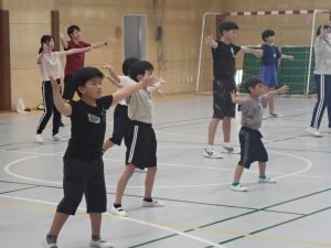 9月17日(水) 昨年に引き続き、講師をお招きして全校ダンスが始まりました。今年の講師の方の専門はヒップホップ。しかもプロ。先生のダイナミックな動きや、初めて体験するリズム感に最初は少し緊張気味だった子供たちでしたが、 先生の明るい声かけと楽しい雰囲気づくりで、あっという間に笑顔があふれ、みんな夢中で身体を動かしていました。新しい動きをどんどん吸収していく姿は、本当に素晴らしいです。この後もスポーツフェスタに向けて何度か来校され、ご指導くださいます。