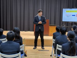 11月21日(金) まず、前期保健委員が、「電子機器の使用と健康の関わり」をテーマに、調査結果や提言を盛り込んだ発表を行いました。児童生徒は、電子機器の利用が心身に及ぼす影響について、クイズや体験活動を通して分かりやすく解説し、参加者全員が楽しみながら理解を深めることができました。その発表を受けて、参加いただいた栄養士さんと保健師さんから、より専門的な視点で「心と体の健康を保つために必要な電子機器の適切な利用の仕方」に助言をいただきました。児童生徒・教職員ともに、電子機器を生活に役立てつつも、健康を維持するための具体的な利用の仕方、ルールや工夫について、改めて考える機会となりました。また後半には、群馬ヤクルトの黒沢様より、「睡眠の大切さ」をテーマに講演をいただきました。成長期にある児童生徒にとって、良質な睡眠がいかに重要か、そしてそれが日中の活動や学習効率、さらには心身の健康に深く関わっているかについて、具体的なデータに基づきご説明いただきました。
