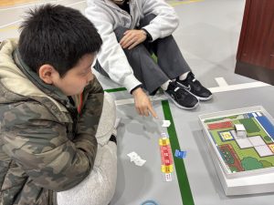 1月15日(木) 3年生から5年生が「トヨタ未来スクール」に参加し、未来の乗り物をテーマにしたプログラミング教室を行いました。 児童たちは、ミニカーを目的地へ導いたり障害物を回避させたりするプログラム作りに挑戦。試行錯誤を繰り返しながら、ゴールを目指して熱心に取り組んでいました。 実際にモノを動かす体験を通して、プログラミングの仕組みや面白さを肌で感じることができたようです。