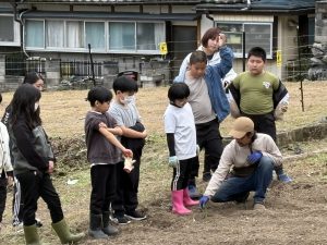 先日、小沢地区で農業を営まれている今井さんのご協力のもと、ブルーベリー畑を見学させていただきました。ブルーベリーを育てる上で大切なことや、どのようなものに加工されているかなど、たくさんのことを教えていただきました。実際にブルーベリーを摘み取らせてもらったり、試食させていただいたりと、子どもたちにとって貴重な体験となりました。