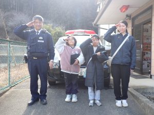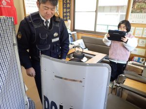 3年生の社会科「くらしを守る人々」の学習として、磐戸駐在所を訪問しました。いつもみんなの安全を見守ってくださる「村の駐在さん」。今回は、実際にお仕事をしている場所にお邪魔して、警察官がどのような思いで私たちの暮らしを守っているのかを詳しく教えていただきました。子どもたちが特に目を輝かせていたのは、警察官が身につけている「本物の装備品」の紹介です。〇重たい防刃ベスト〇みんなの安全を守るための無線機〇パトカーに積まれている特殊な道具 「こんなに重いものを身につけてパトロールしているんだ!」と、その責任の重さを肌で感じた様子でした。貴重な体験をありがとうございました。