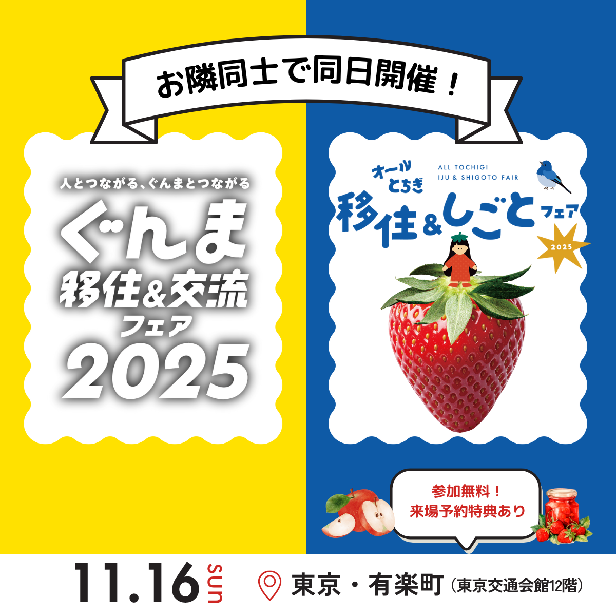 ○漠然と移住を考えている方 ⇒ 当日は隣の会場で栃木県の移住相談会も同時開催!北関東エリアの情報を一気に収集できます