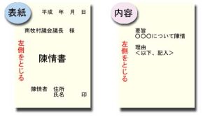 - 表紙には 陳情書 と書いて下さい。